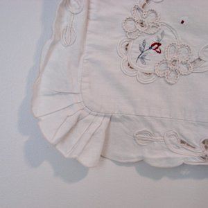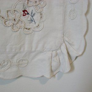 Vintage Floral Embroidered Pillow Case Cover Shabby Chic Flowers Lace Ruffle Edge ~ no tag