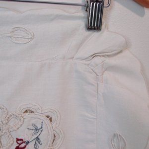 Vintage Floral Embroidered Pillow Case Cover Shabby Chic Flowers Lace Ruffle Edge ~ no tag