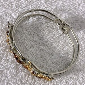Elegant floral bracelet featuring gold and brown tones. Perfect for adding a touch of sophistication to any outfit.