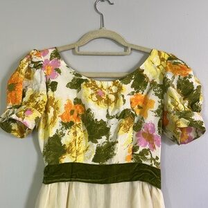 Vintage Floral Maxi Dress with Puff Sleeves XS/ small