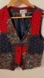 Bold, artsy, and totally 90s — this Tabi International patchwork vest brings instant vintage charm. Features rich jewel tones, red + navy contrast panels, and floral tapestry details with subtle plaid accents. Fully lined with button front closure.