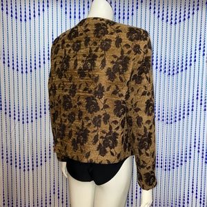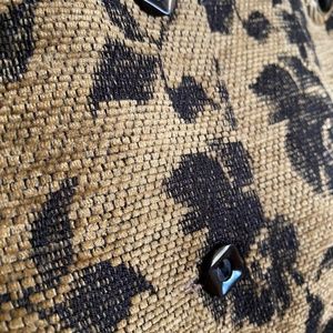 Found this one in my mom's closet, she would have purchased it new, it's in excellent condition. The material is sort of like a soft and light upholstery with a black floral pattern. Tag say size 14... please refer to measurements. Decorative pin is included. (Mannequin is a size 6).