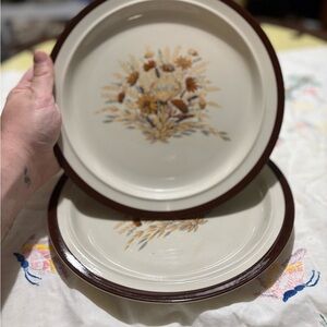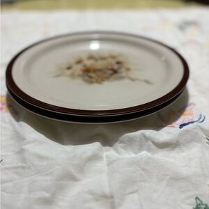 Elegant cream plate with a charming floral design, accented by a rich brown rim. Perfect for enhancing your dining experience.