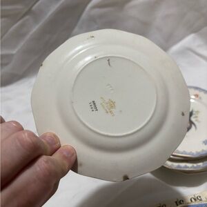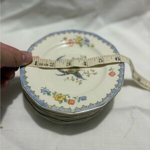 Elegant porcelain dessert plates featuring a charming floral design. Perfect for adding a touch of sophistication to your dining experience. See photos for wear. Wear due to age and previous use.