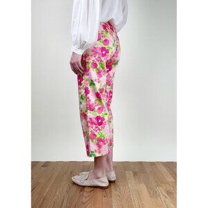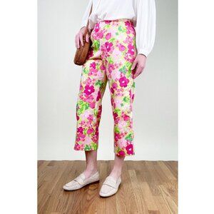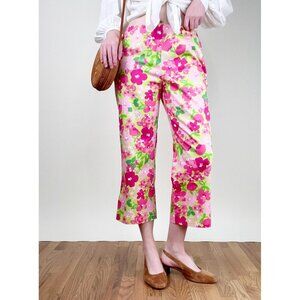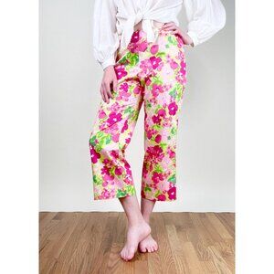Stunning Vintage Floral Print Capri Cropped Trouser Wide Straight Leg Flare Summer Pants