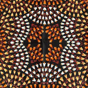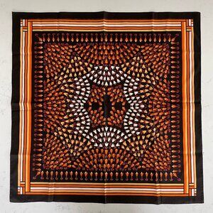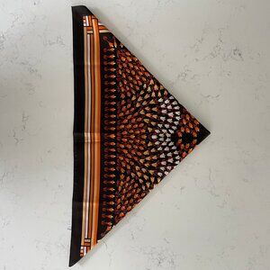 Vintage Floral Print Stripe Border 26.5" x 26.5" Sq Scarf Orange Wht Yel Brn Blk