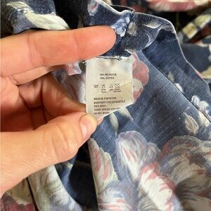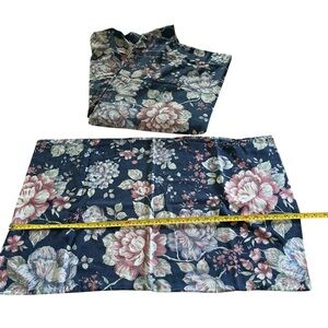 Charming floral duvet cover set with a vintage cottagecore feel. This set includes a twin-size duvet cover (52” x 75”) and one matching pillowcase. Made of a soft polyester-cotton blend, featuring a muted rose and green floral print on a denim-blue background.