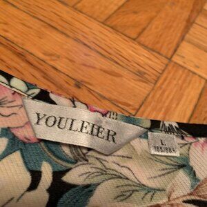 Vintage Floral and Black Shortsleeve Dress Cute Style MIDI Length