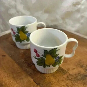 Vintage Floral and Fruit Mugs - Japan Excellent condition. Measurements: 3.75” wide (including handle) x 3.25” tall