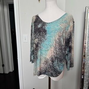 Vintage Floral turquoise glitter top Fairycore whimsy renaissance dreamy L