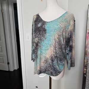 Elegant women's top featuring a beautiful floral print. The blend of blue and gray colors adds a touch of sophistication. Perfect for casual outings or a day at the office.
