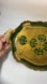 Elegant vintage tray with ornate gold and green design. Perfect for decor or serving.