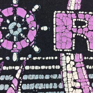 Good used condition. Signs of normal wear and heavy color fade from use. Cracking on the prints. Light discoloration at front of shirt as pictured.