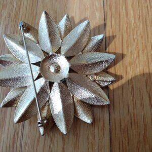 Vintage Flower Brooch Gold Tone Sunflower Daisy Sarah Coventry Statement Jewelry