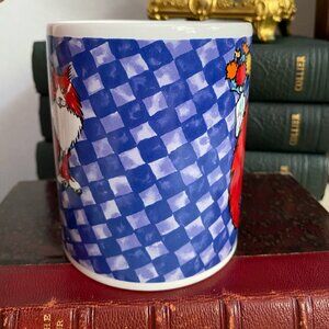 Vintage Fluffy Red Orange White Cat Flowers in Vase Painting Mug 80s 90s