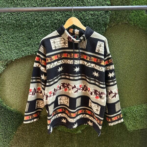 Vintage Fly Beans Sports Striped Pullover Fleece Large