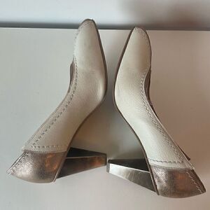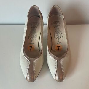 Vintage Fly London White Gold Heels Funky Artsy Size 37 (US 6.5)