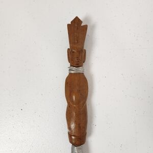 Vintage Fly Whisk Tool Primitive Collectible Wood Carved Cow Hair Africa Tribal
