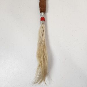 Antique primitive tool. Unique handle. Vintage fly whisk swatter. Hand carved with real cow tail fur. This is a very unique collectible.