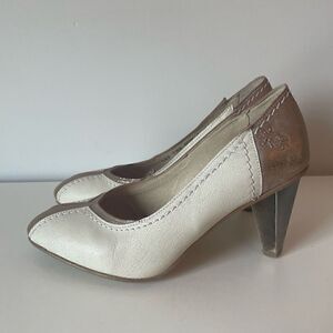 Vintage Fly London White Gold Heels Funky Artsy Size 37 (US 6.5)