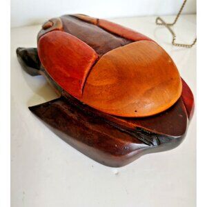 Vintage Folk Art Hand-Carved WOOD FROG 2 Piece Trinket Box 10" x 7"