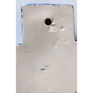 Vintage Folk Art Pottery Cross Blue Hand Made Hand Painted Wall Hanging 9"* 6.5"