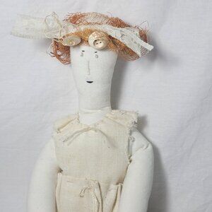 This charming handmade Vintage Folk Art Primitive Style Doll is a unique creation that resonates with the simplicity of bygone days. This folk art doll, dressed in a quaint beige hue is a delightful nod to the earthy allure of autumn. Designed to be a versatile companion, it is suitable for any age and makes for a thoughtful gift for various occasions. Its medium size ensures it stands out as a cozy addition to any collection or as a playful pal for children and adults alike.