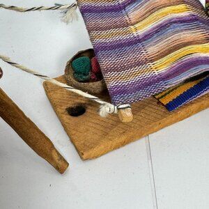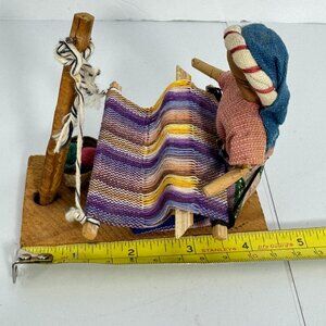 Vintage Folk Art Weaving Woman Guatemala Latin Figurine Souvenir Wood Yarn