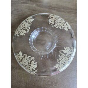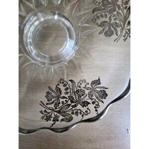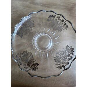 Vintage Footed Glass Serving Plate Sterling Silver Overlay Floral Etched 10"