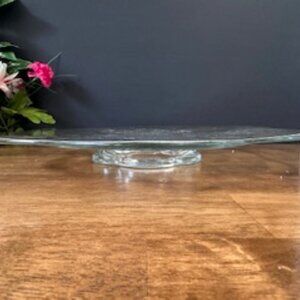 Vintage Footed Glass Serving Plate Sterling Silver Overlay Floral Etched Clear G