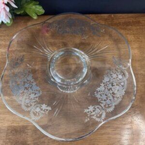 Vintage Footed Glass Serving Plate Sterling Silver Overlay Floral Etched Clear G