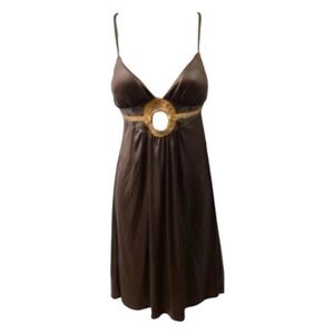 Vintage Forever 21 90's Y2K Brown dress with Gold Accent loop cutout size Small
