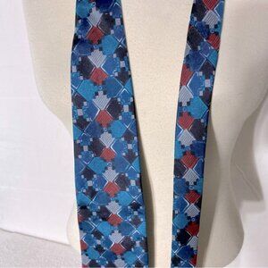 Vintage Forsyth Blue Red Square Print 100% Silk Tie