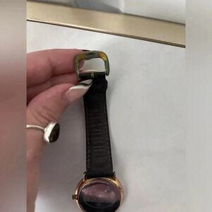 Vintage | Fossil | 1980's Fossil World Gold Watch with Black Leather Band