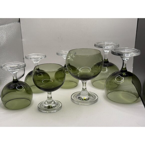 #FostoriaGlass #SphereGreen #VintageStemware #MidCenturyGlass #1970sGlassware #FostoriaCollectible #OliveGreenGlass #RetroTableware #VintageBarware #DiscontinuedPattern #GreenGoblets #WineGlasses #VintageDrinkware