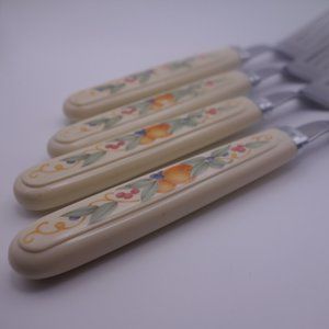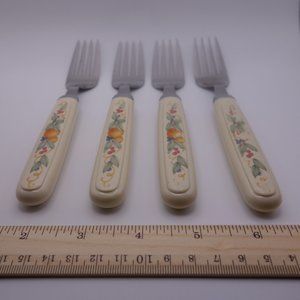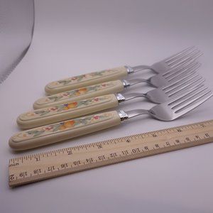 Vintage Four(4) Stainless Steel Forks with Plastic Handles with Pattern