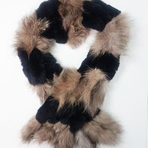 Vintage Fox and Rabbit Fur Scarf, Black and Grey Fox Fur Scarf