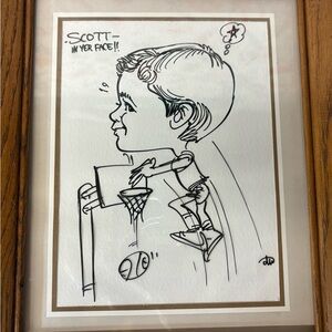 This charming art piece features a playful illustration, beautifully framed in brown wood. Perfect for adding a touch of whimsy to your home decor.