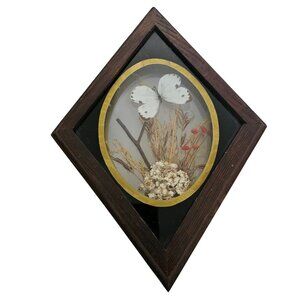 This exquisite vintage wall art piece features a delicate butterfly and dried flowers encased in a diamond-shaped wooden frame. Elegantly preserved, it adds a touch of nature's beauty to home interiors, creating a serene atmosphere. Ideal for enhancing the aesthetic appeal of living spaces.