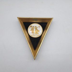 A vintage framed cameo in an ancient Greek theme made by B&S Creations in New York back in 1966. It has 2 women in ancient garb gathering flowers on white porcelain surrounded by a gold colored border. There is some wear as in the pictures.