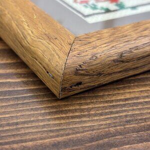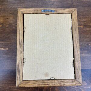 Minor wear to wood frame consistent with age, including visible nail holes and surface scuffs. Cardboard backing shows slight water stain (not visible when hung). See photos for details.