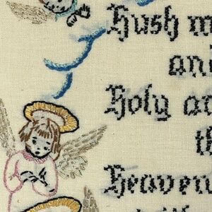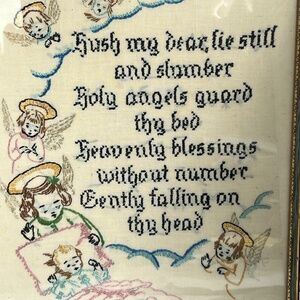 Vintage Framed Prayer Embroidered Childs Bedtime Angels Signed Dated 1940