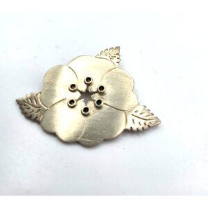 Striking vintage sterling silver brooch by Rebajes, a celebrated modernist designer known for his sculptural mid-century silverwork. This piece features a brushed satin poppy flower with a stylized star center and engraved leaf accents. Marked “STERLING” and stamped with the Rebajes shield hallmark on the reverse.