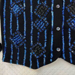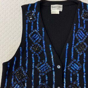 Vintage Franco Valeri Men’s Small Blue Sequin Embellished Vest Jacket Party Wool