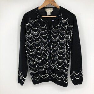 Vintage Franco Valero Black Pearl Embroidered Buttoned Wool blend Cardigan