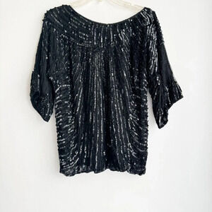 Vintage Frank Usher Black All Over Sequin Sparkly Half Sleeve Top S