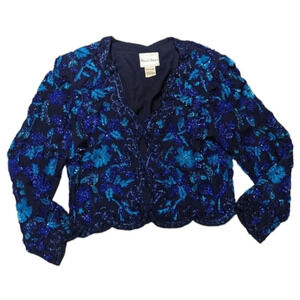 Vintage Frank Usher Blue 100% Silk Hand Beaded Embroidered Jacket Small