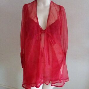 Vintage Frederick's Of Hollywood Babydoll / Matching Robe And Long Vintage Red Gloves