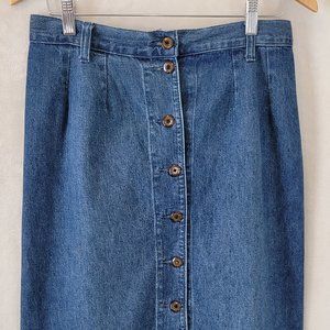 Vintage French Dressing from Paris denim skirt, mid lenght button down Size M