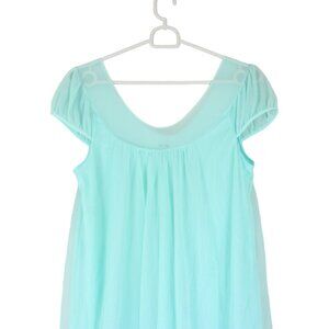 Vintage French Maid Nightgown Aqua Blue Small Full Length Short Sleeves SW52